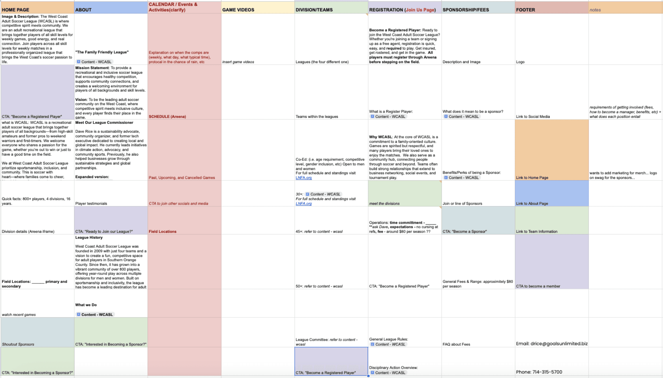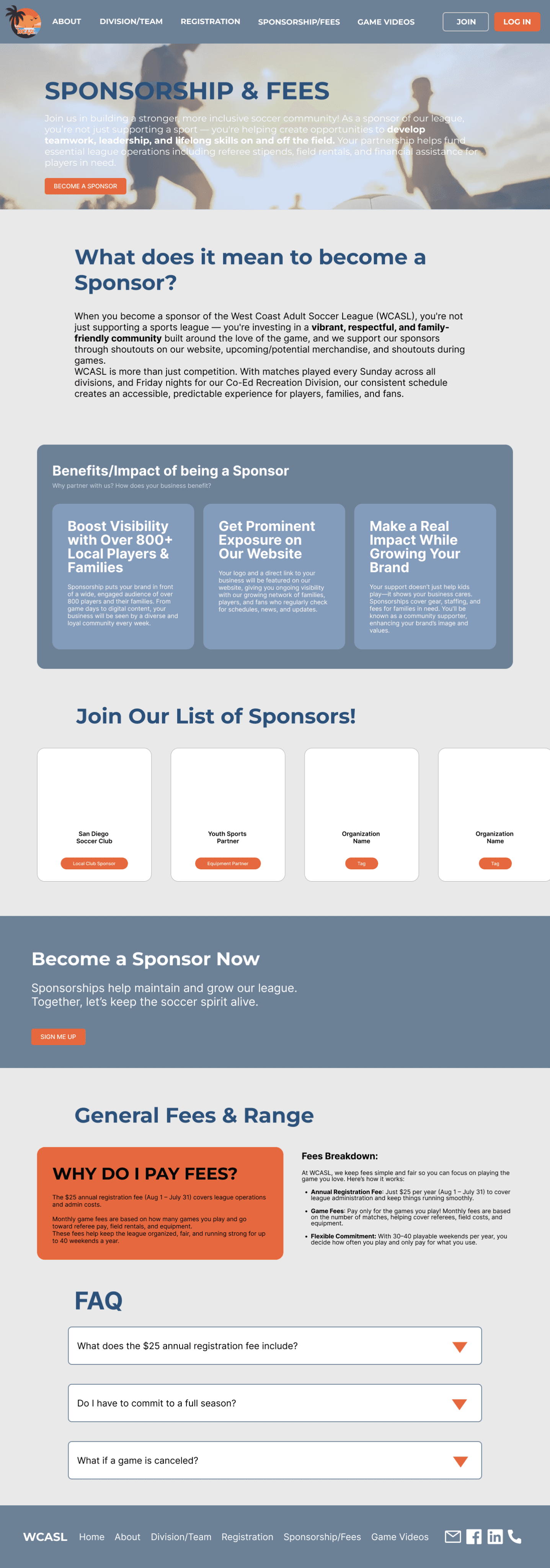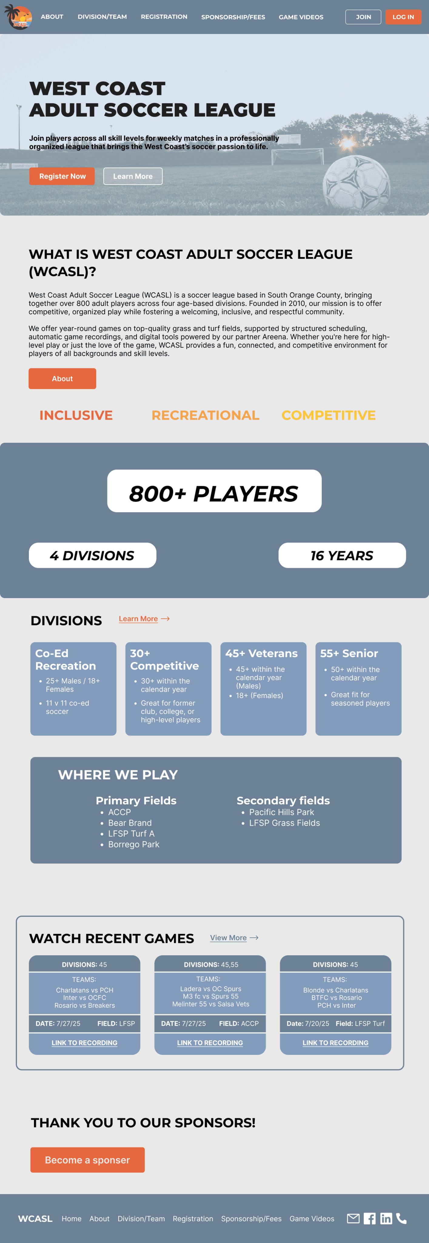 My team partnered with the West Coast Adult Soccer League (WCASL), a South Orange County-based adult recreational league, to redesign their website.