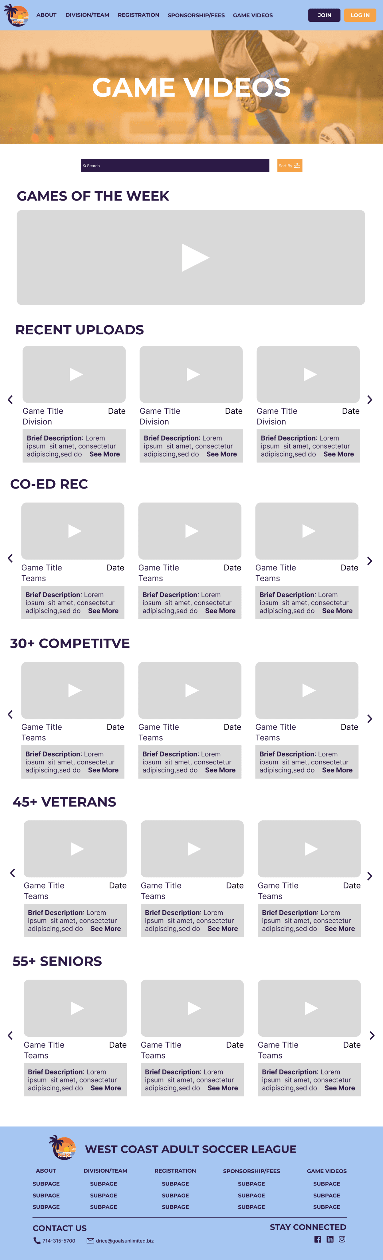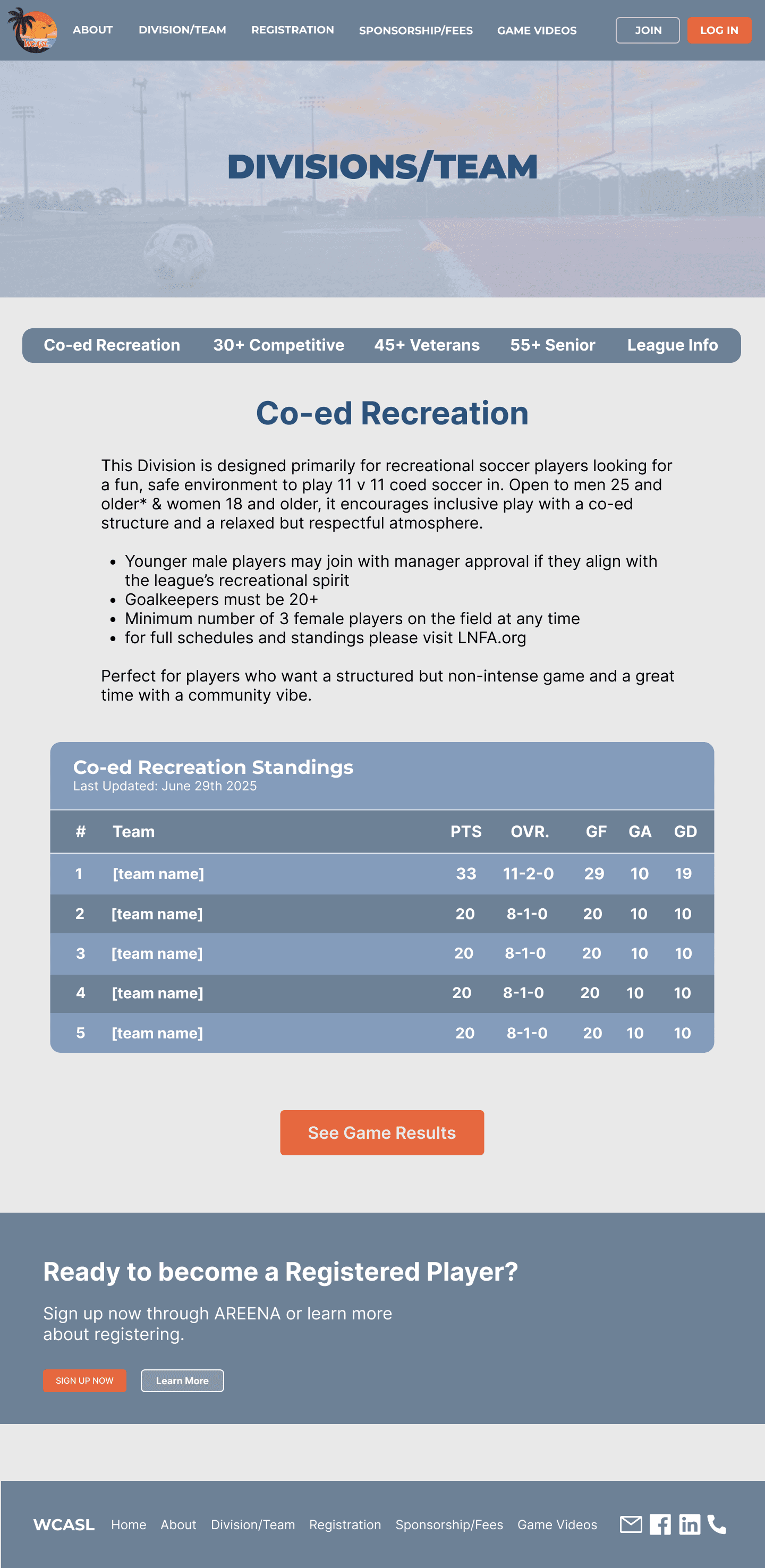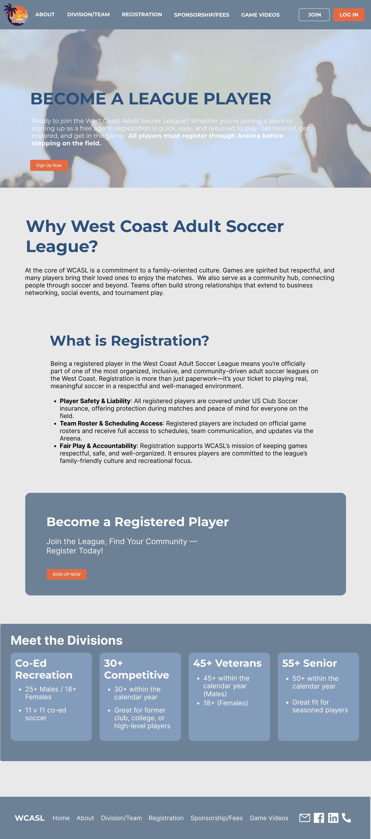 Design a more intuitive and engaging WCASL website that draws in players of all skill levels, clarifies the registration process, and makes it easy to stay up to date with schedules, scores, and media?