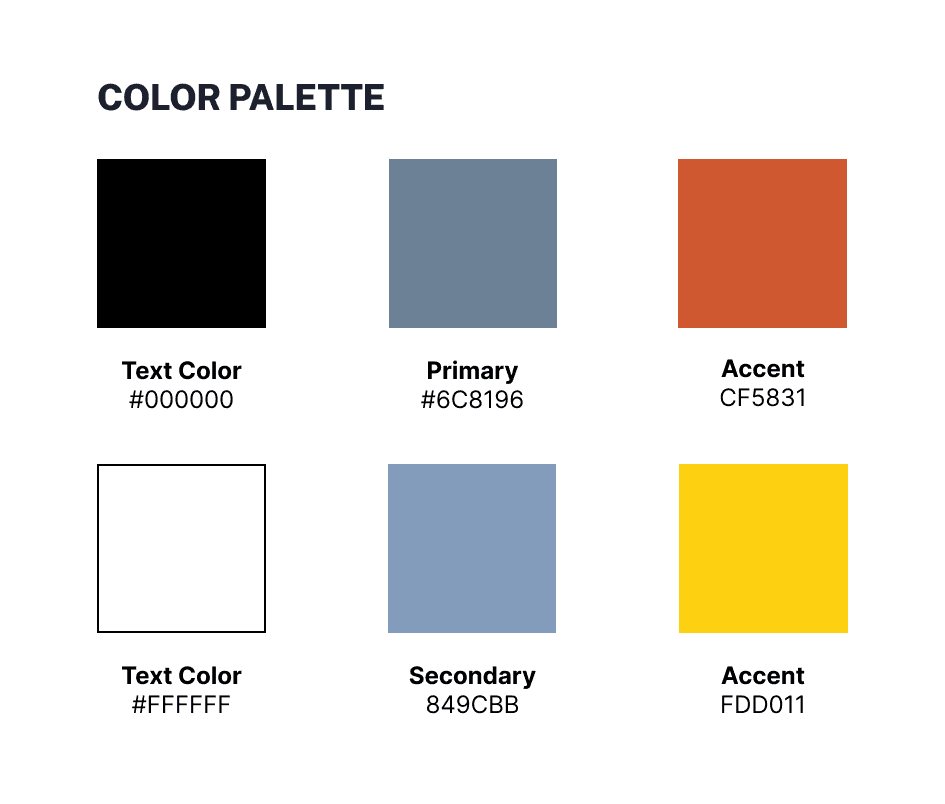 Colors were originally taken from the logo, but our client wanted a slate gray base, so we adjusted according