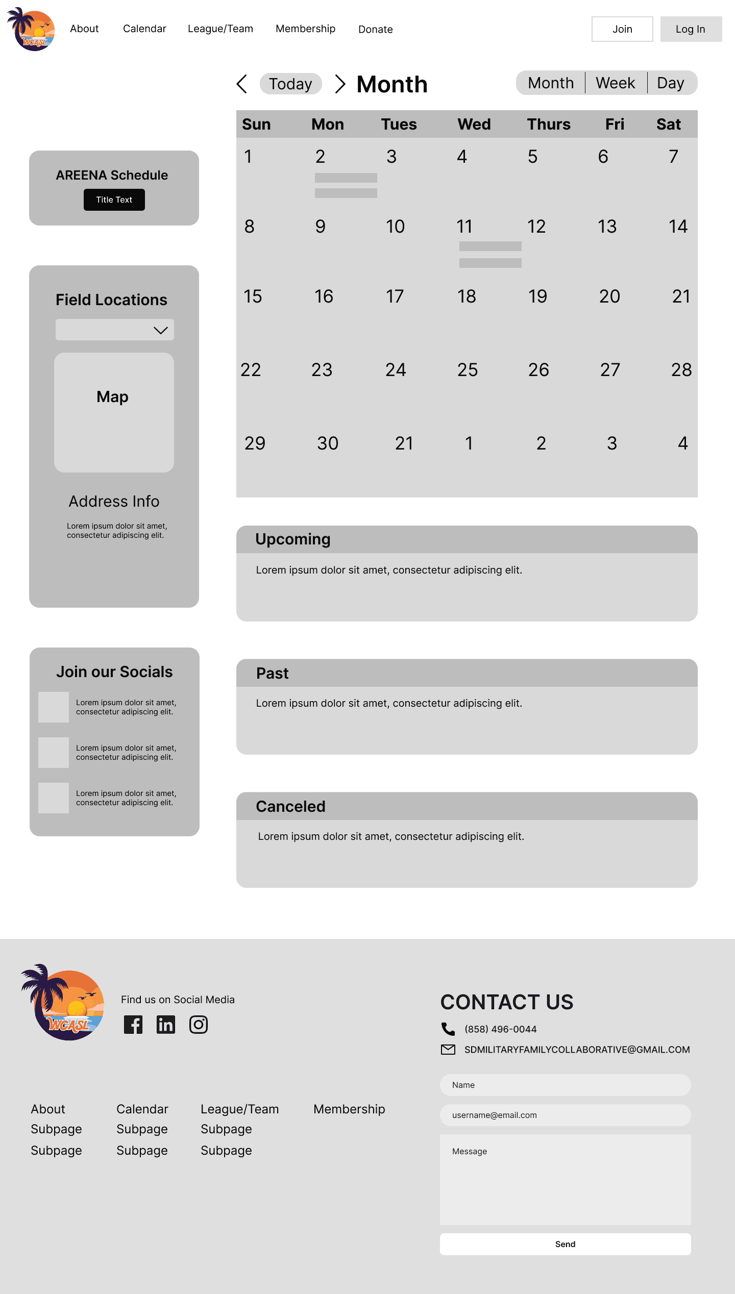 After contacting Areena for iFrames, we realized that implementing a calendar page wouldn't be feasible so we removed it from our wireframes