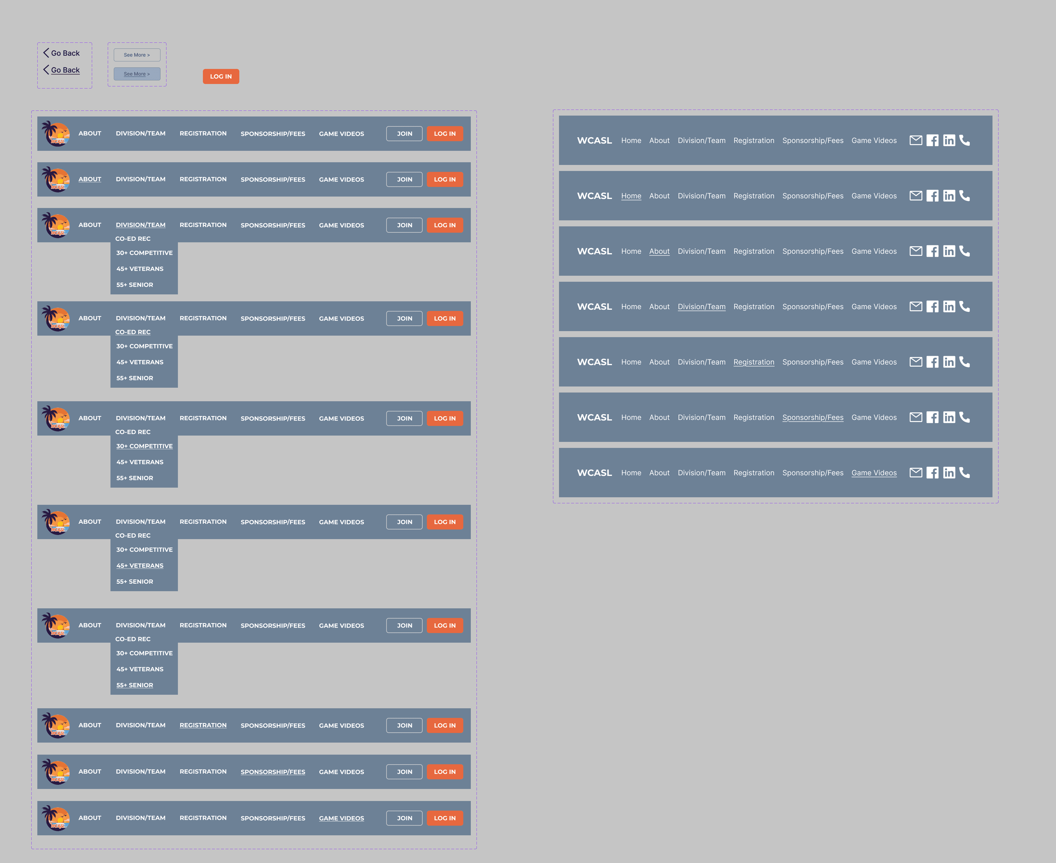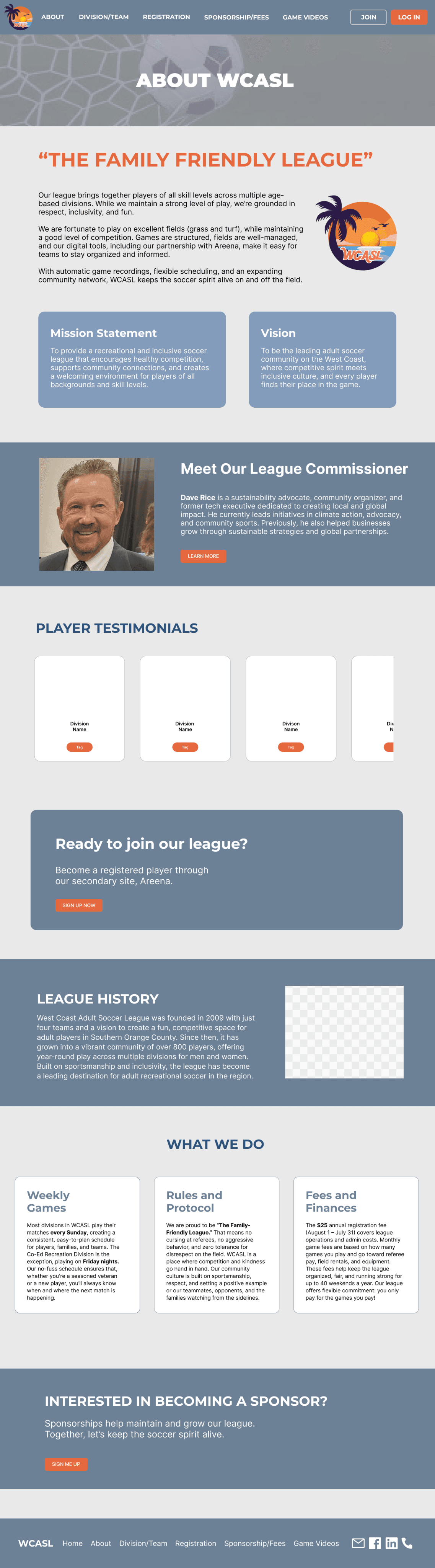 Context: We were given free rein to design the entire new site from scratch. We held bi-weekly meetings with Dave Rice, the founder of WCASL, and frequently iterated based on feedback. Dave's main goal was to create a website that would draw in new members and host any information not available on Areena, their mobile app.